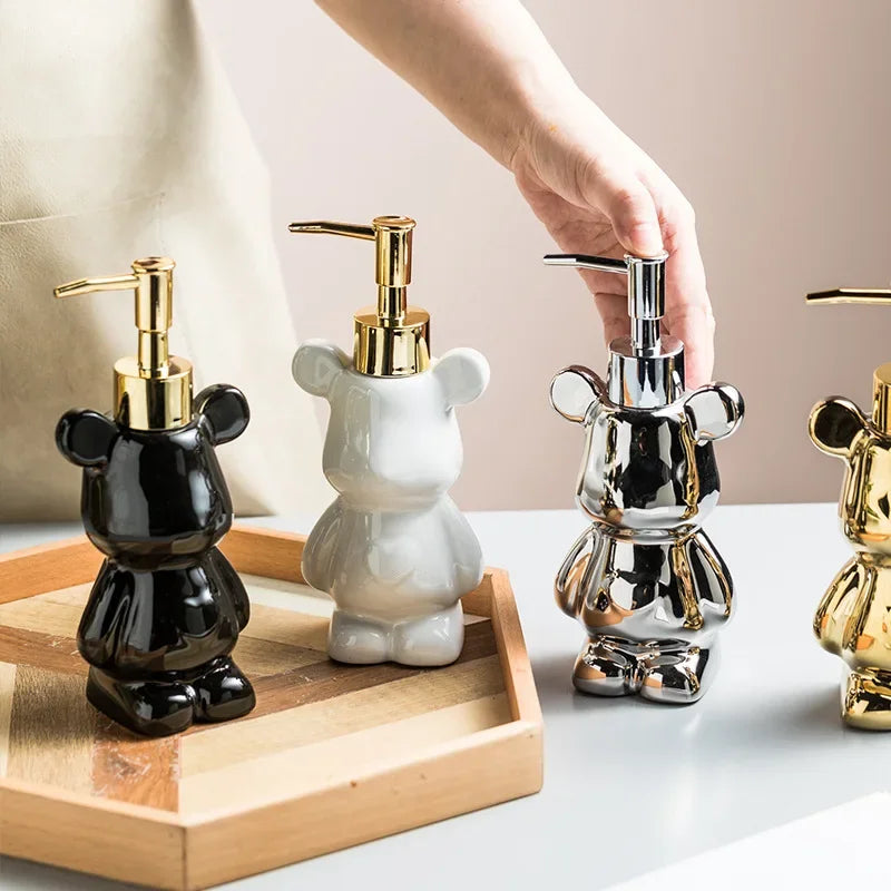 Bouteille d’émulsion créative ours galvanisé distributeur 200 ml : Un atout décoratif