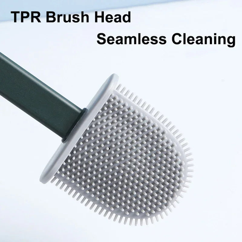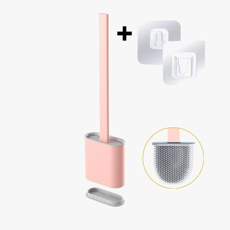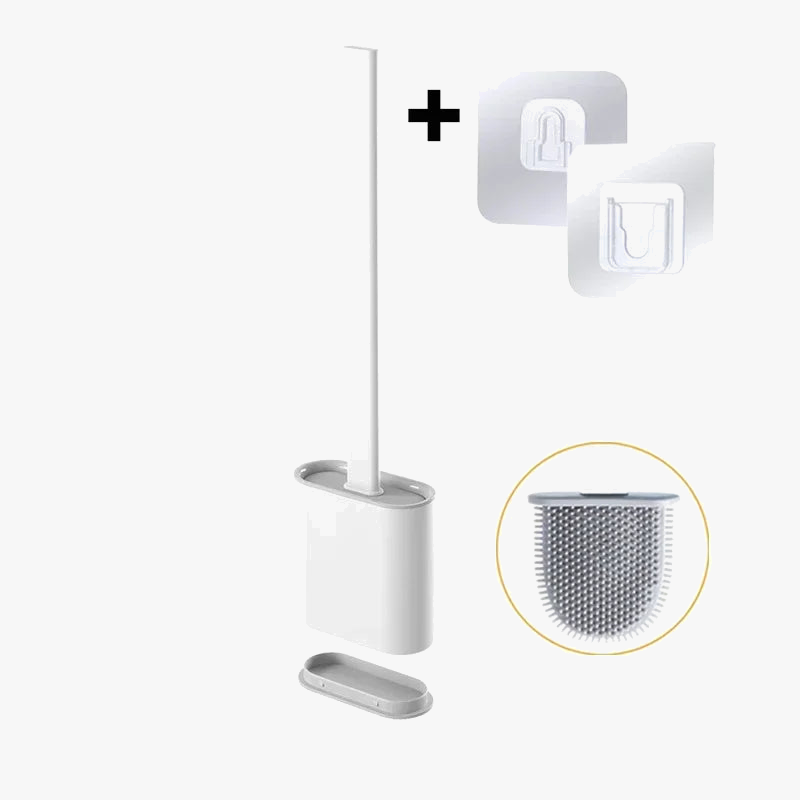Brosse de toilette en silicone avec support mural et long manche pour une hygiène parfaite