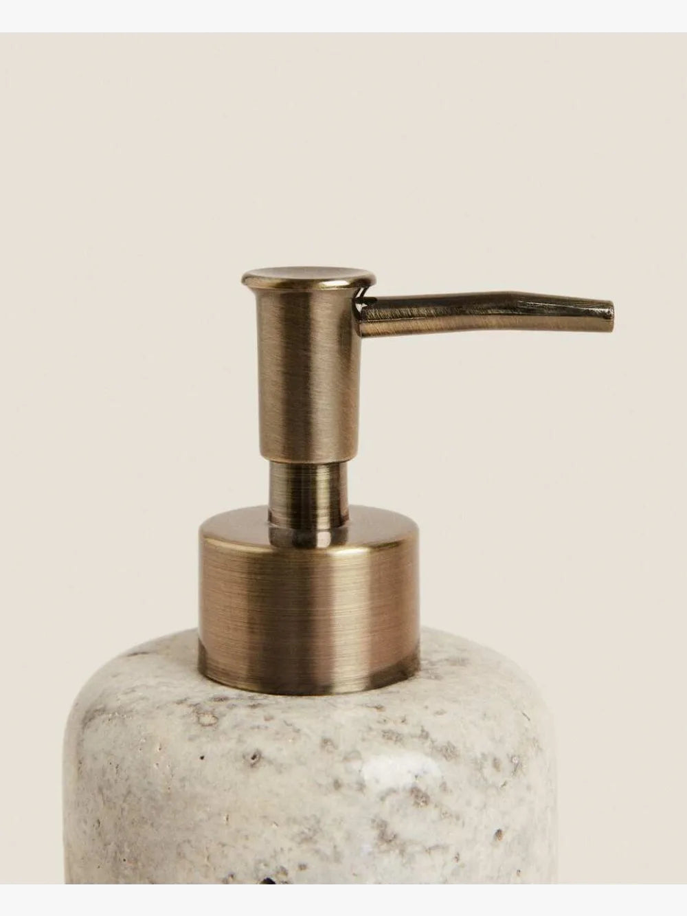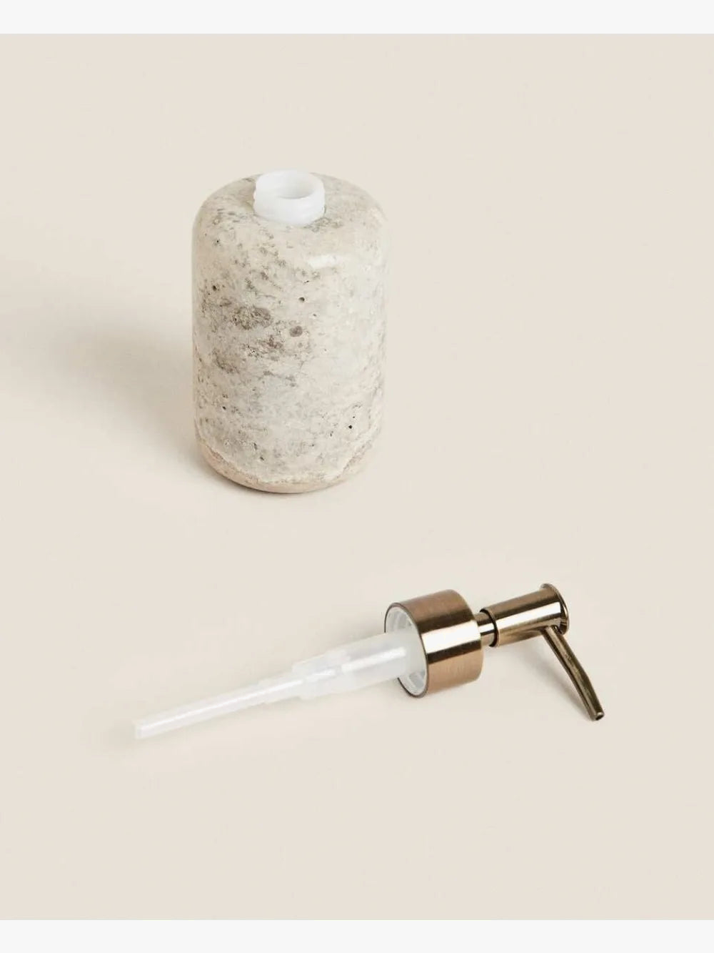Distributeur de liquide rechargeable en marbre travertin naturel : Élégance dans votre salle de bains