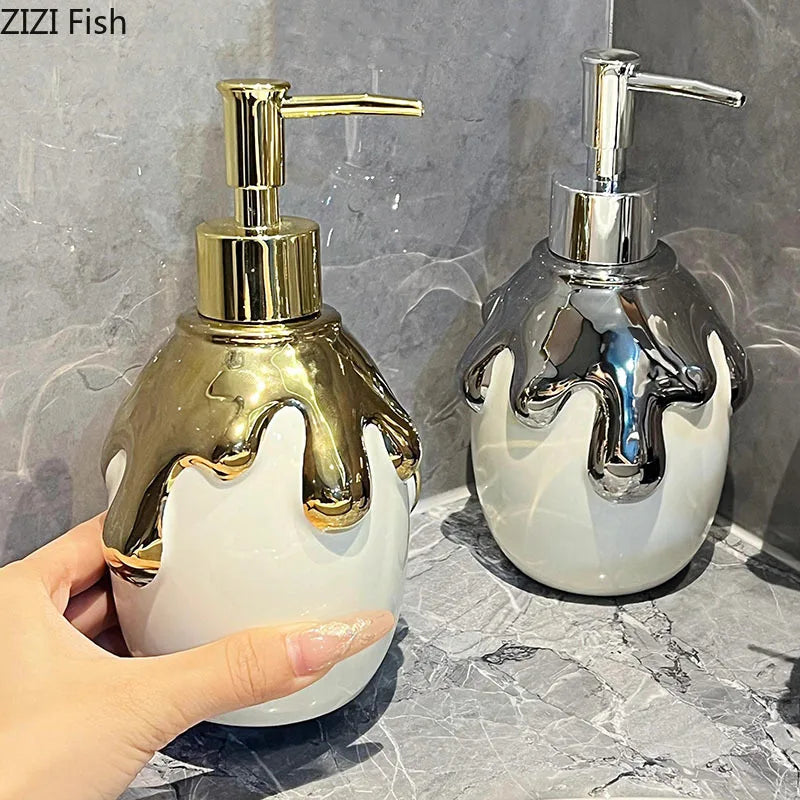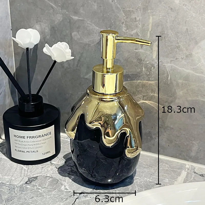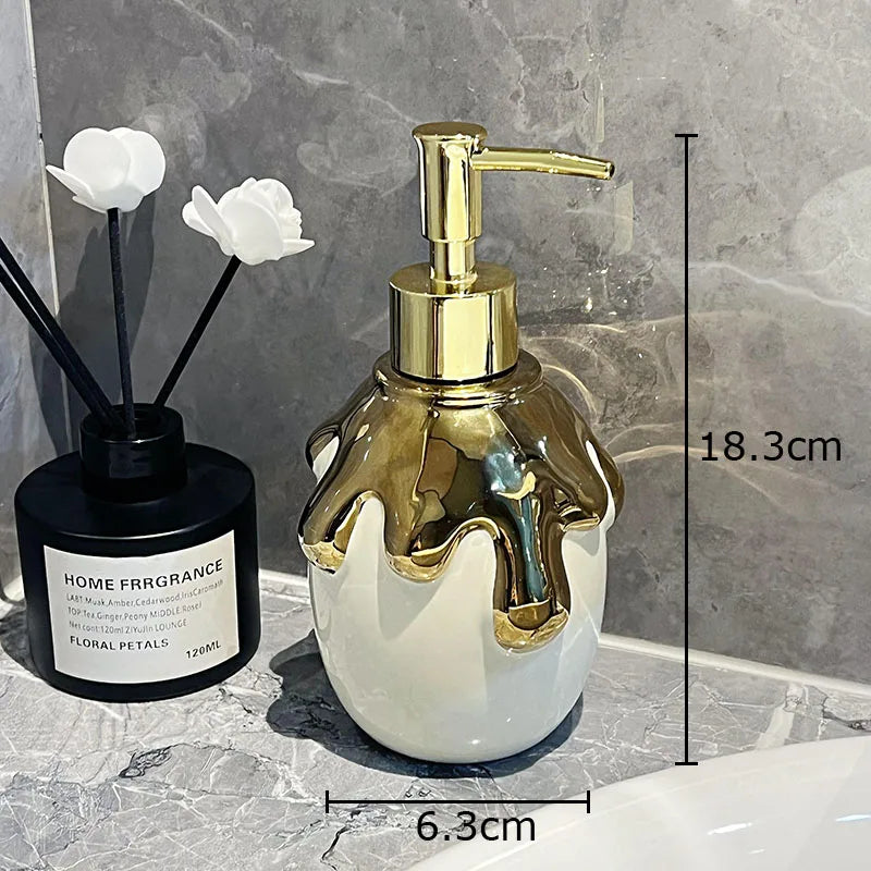 Distributeur de savon en céramique dorée pour salle de bain: Élégance et fonction