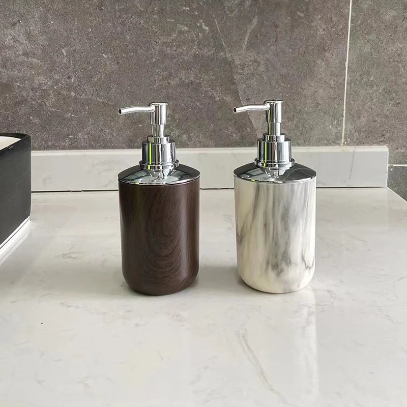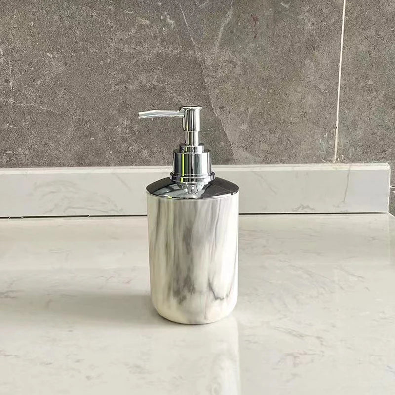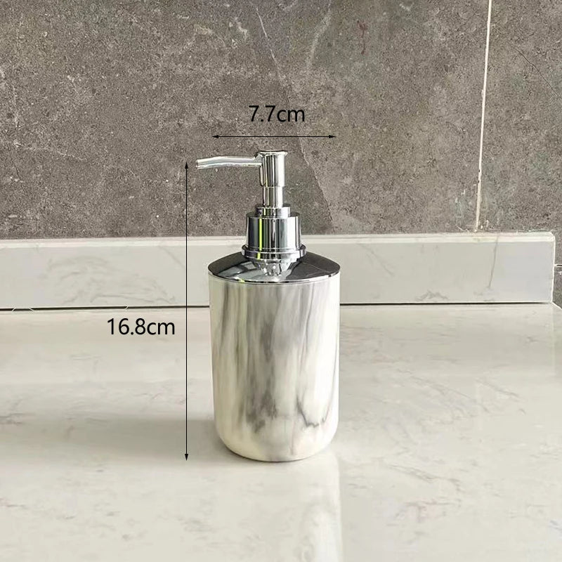 Un distributeur de savon en plastique marbré, un choix durable et esthétique
