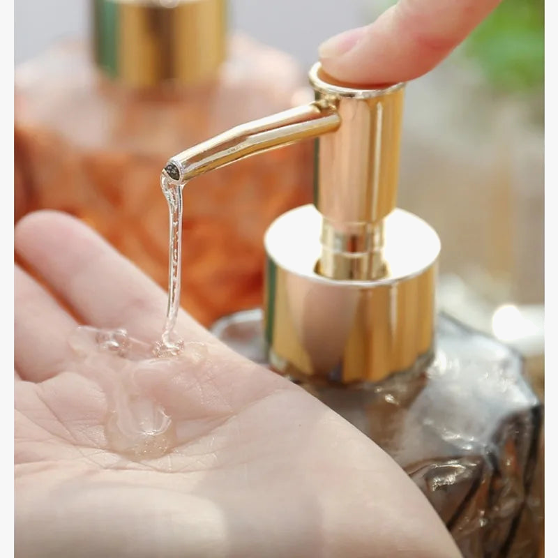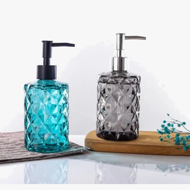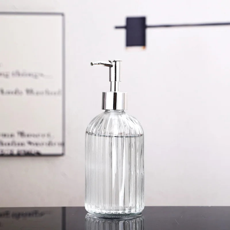 Un distributeur de savon liquide en verre portable pour salle de bain pratique et hygiénique