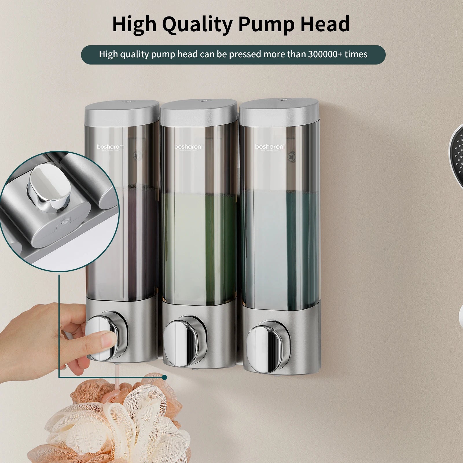 Conçu avec une capacité idéale, ce distributeur de savon liquide mural triple vous permet de stocker proprement vos produits préférés tels que le shampooing, le gel douche et la lotion. En optant pour cet accessoire, vous créez un environnement qui respire la propreté et l’efficacité. Que ce soit pour votre domicile ou pour un usage professionnel, ce distributeur est une solution pérenne pour toutes vos exigences d’hygiène.