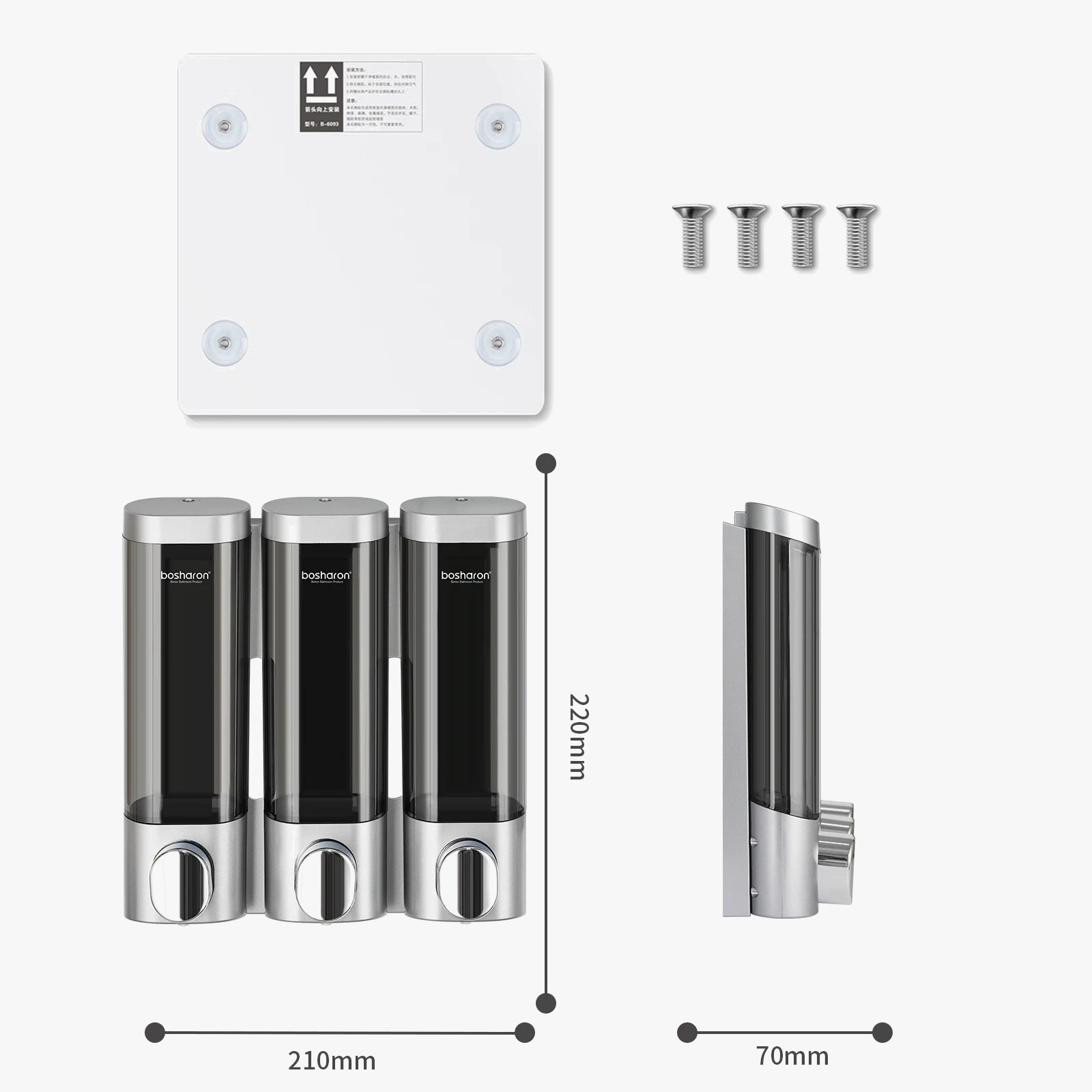 Ce distributeur de savon liquide mural triple pour gel et lotion se distingue par son design moderne qui saura combler les amateurs de décoration intérieure soignée. Sa conception en plastique ABS de haute qualité assure à la fois robustesse et légèreté, garantissant un usage quotidien optimal sur le long terme. Son esthétique épurée s’intègre harmonieusement dans tous les styles de décoration, qu’ils soient contemporains ou minimalistes.
