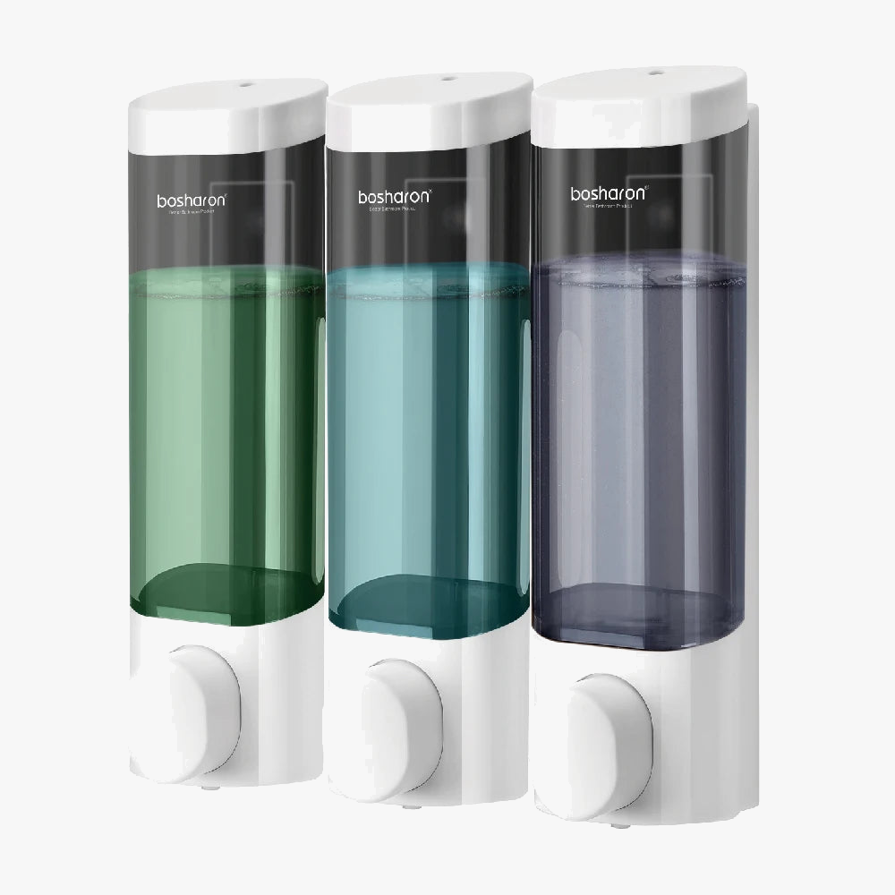 Un design moderne et ergonomique avec notre distributeur de savon liquide mural triple pour gel et lotion