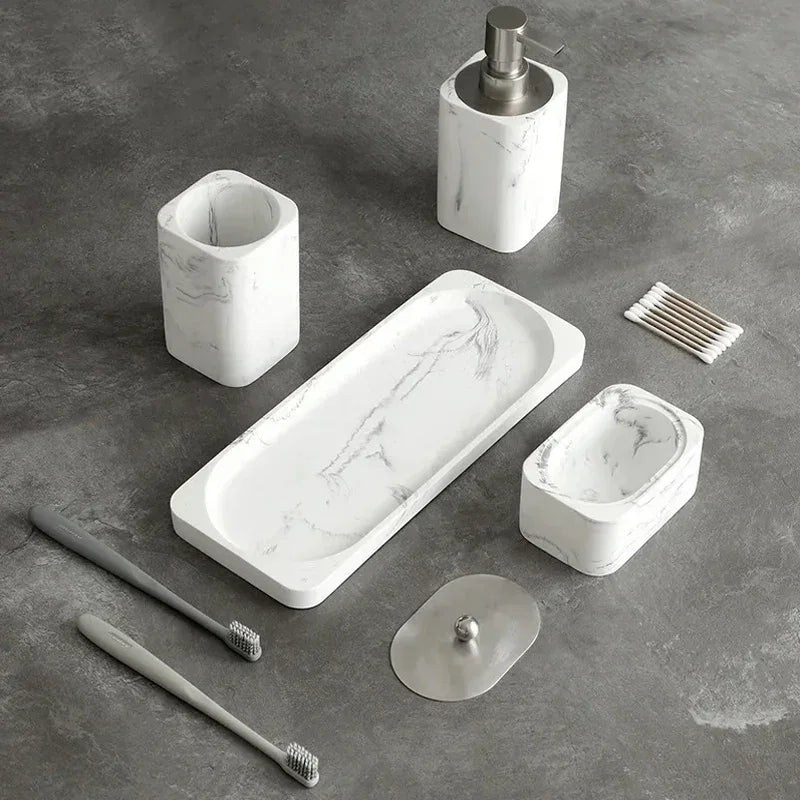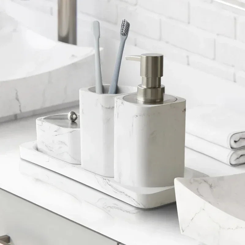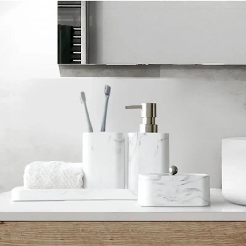 Ensemble accessoires en résine et marbre pour salle de bain : un design alliant style et commodité