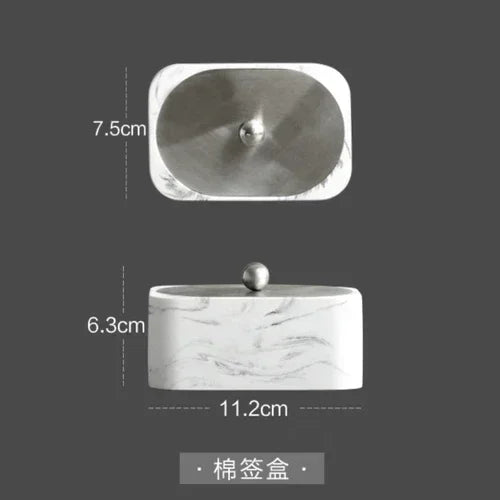 Découvrez l’art de la sophistication avec notre ensemble d’accessoires en résine et marbre pour salle de bain. Alliant un design élégant à une fonctionnalité quotidienne, cet ensemble transforme votre espace intime en un lieu de luxe et de sérénité. Laissez-vous séduire par la noblesse du marbre associé à la modernité de la résine.