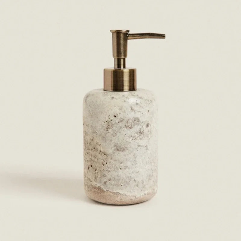Découvrez l’ensemble d’accessoires en travertin wabi-sabi pour salle de bain : harmonie et fonctionnalité