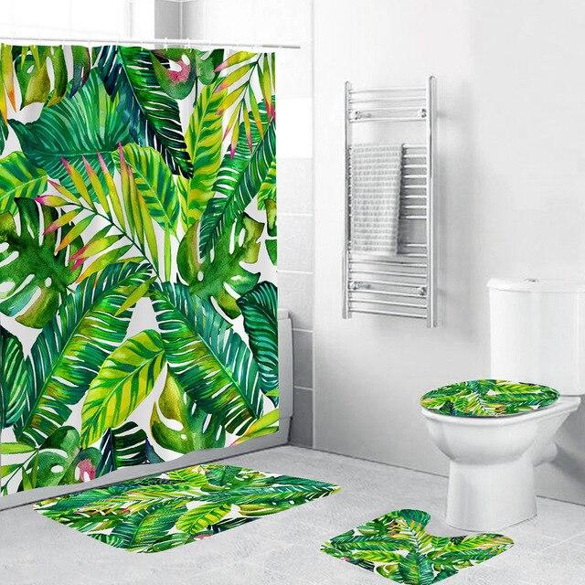 Ensemble de Rideau de Douche Feuilles Tropicales pour un look exotique et fonctionnel de votre salle de bain.