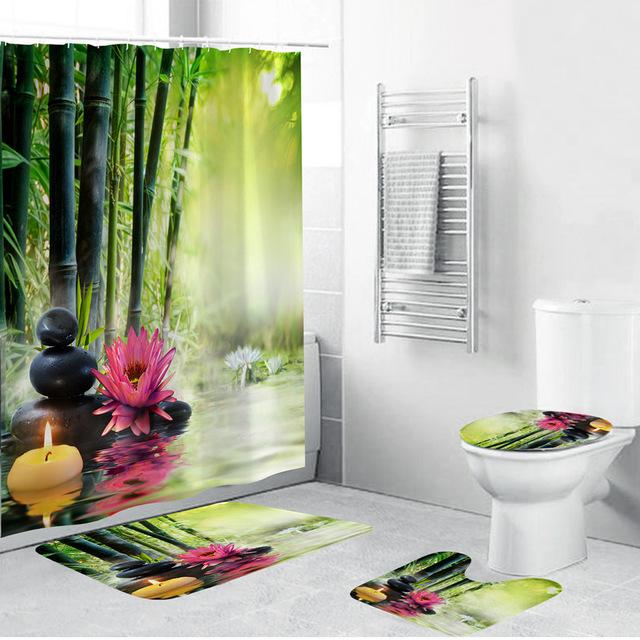 Optez pour l’Ensemble de Rideau de Douche Paysage Zen pour une Salle de Bain Unique