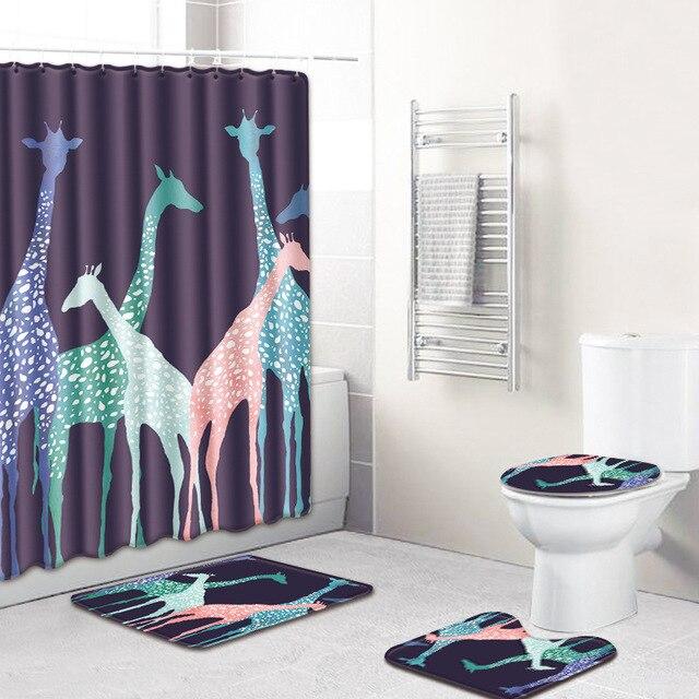 Personnalisez votre salle de bain avec l’Ensemble de Rideau de Douche Peinture de Girafes