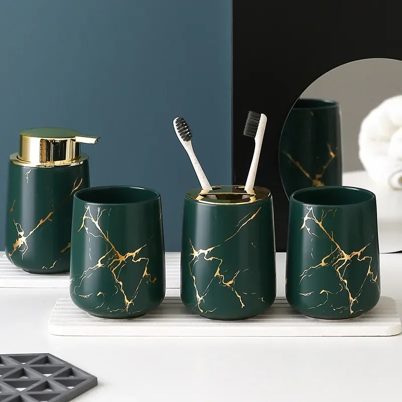 Chacun des éléments de l’ensemble de salle de bain en céramique est conçu pour améliorer votre routine quotidienne. Le distributeur de savon, le porte-brosse à dents, la coupelle pour le savon et le gobelet de bain sont pensés pour offrir une utilisation intuitive et confortable.