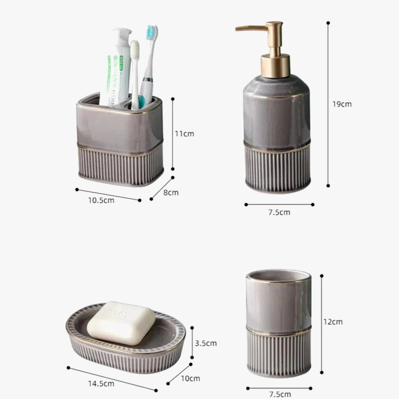 Chaque composant de l’ensemble moderne de cinq accessoires de salle de bain offre une fonctionnalité précieuse. Le distributeur de savon permet une utilisation pratique et propre, tandis que les autres éléments, comme le gobelet pour le bain de bouche, ajoutent une touche d’organisation à votre espace. Profitez de la praticité et du style avec cet ensemble unique.
