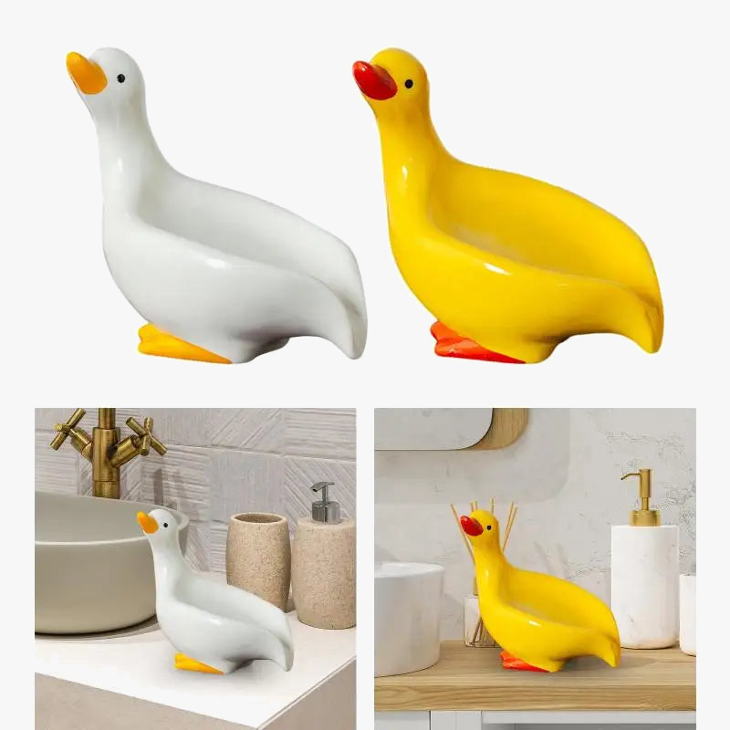 Porte-savon en céramique canard design auto-drainant pour un intérieur raffiné