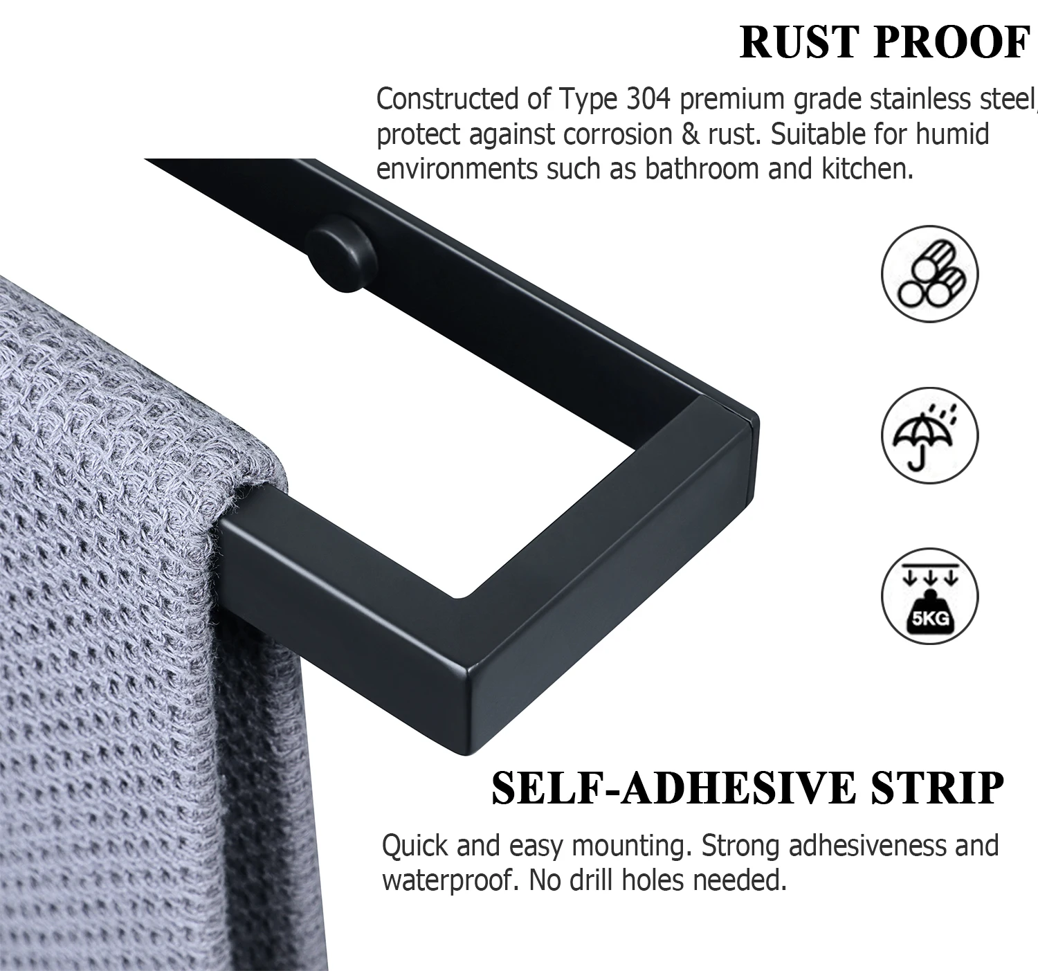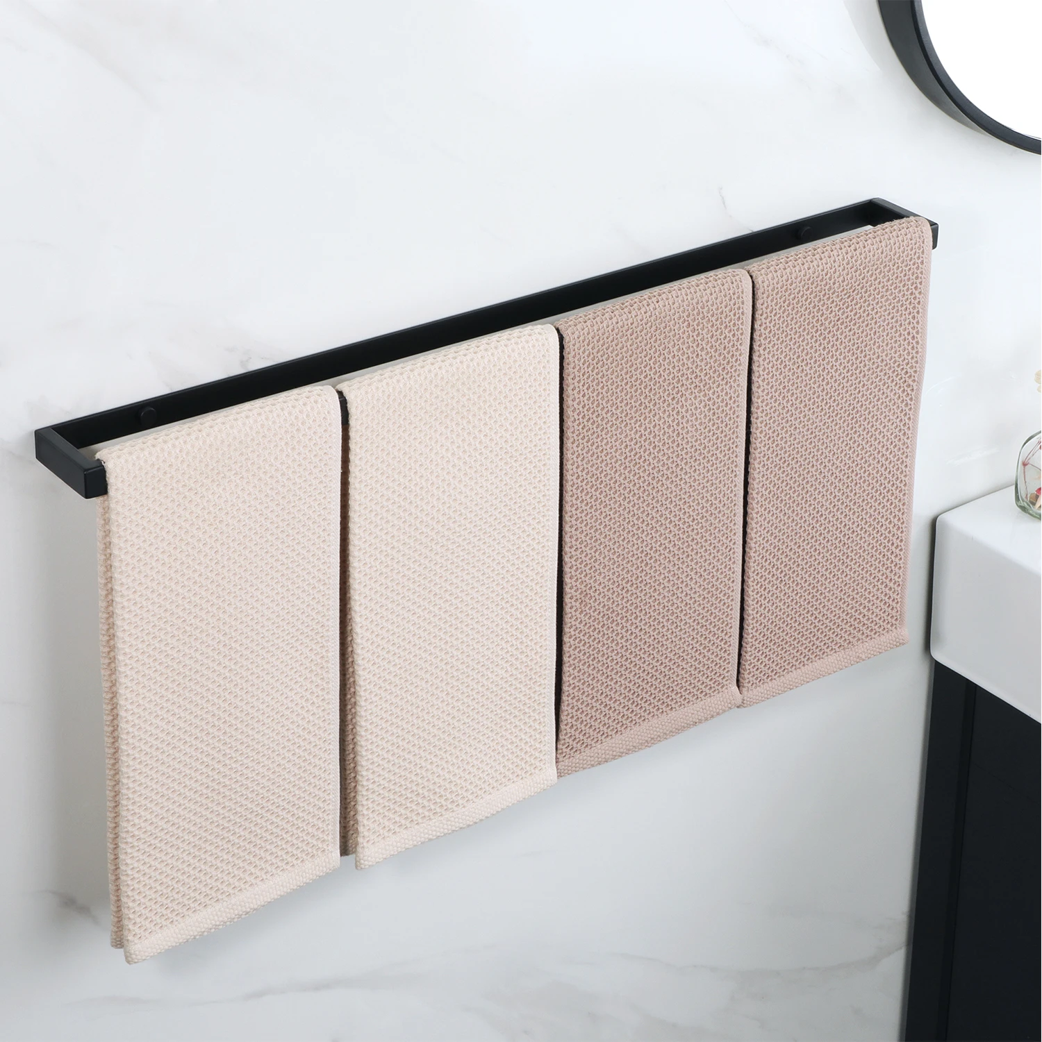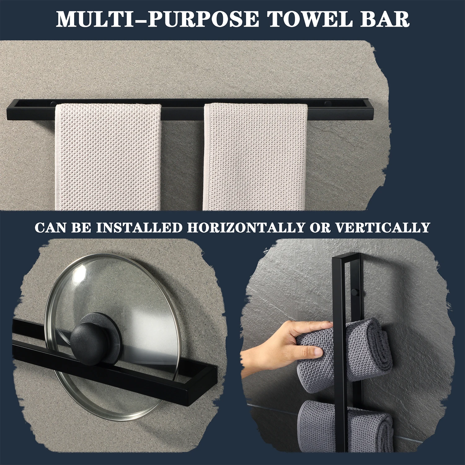 Le Porte Serviette 60cm est pensé pour une installation sans tracas. Que vous choisissiez la fixation murale vissée ou l’option adhésive, ce produit s’installe facilement, vous offrant ainsi une flexibilité maximale selon vos besoins et préférences en matière de design.