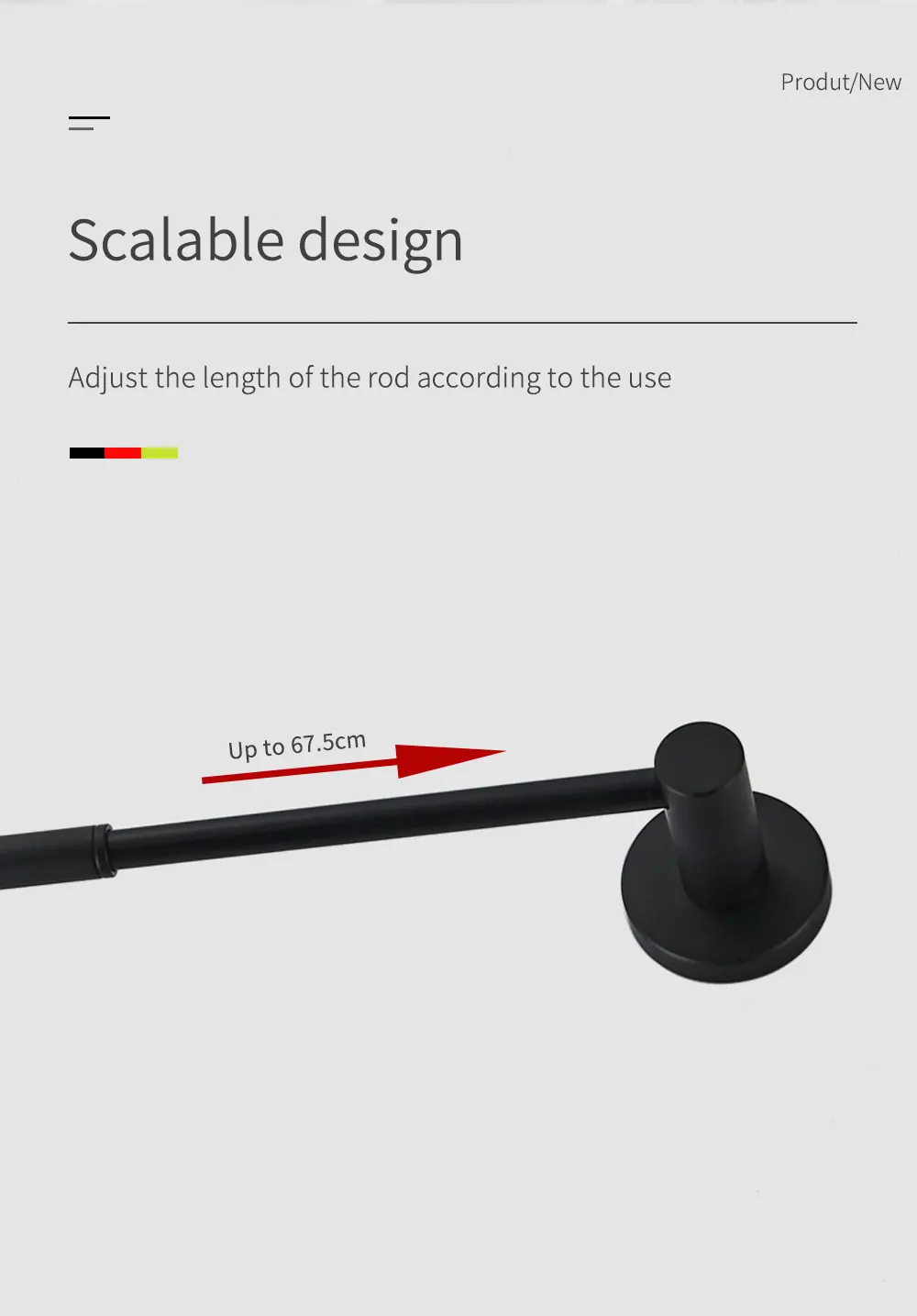 Son design extensible vous permet d’ajuster sa longueur selon vos besoins, offrant une grande flexibilité. De plus, son allure moderne s’intègre parfaitement dans tout style de décoration, enrichissant ainsi l’esthétique de votre salle de bain.
