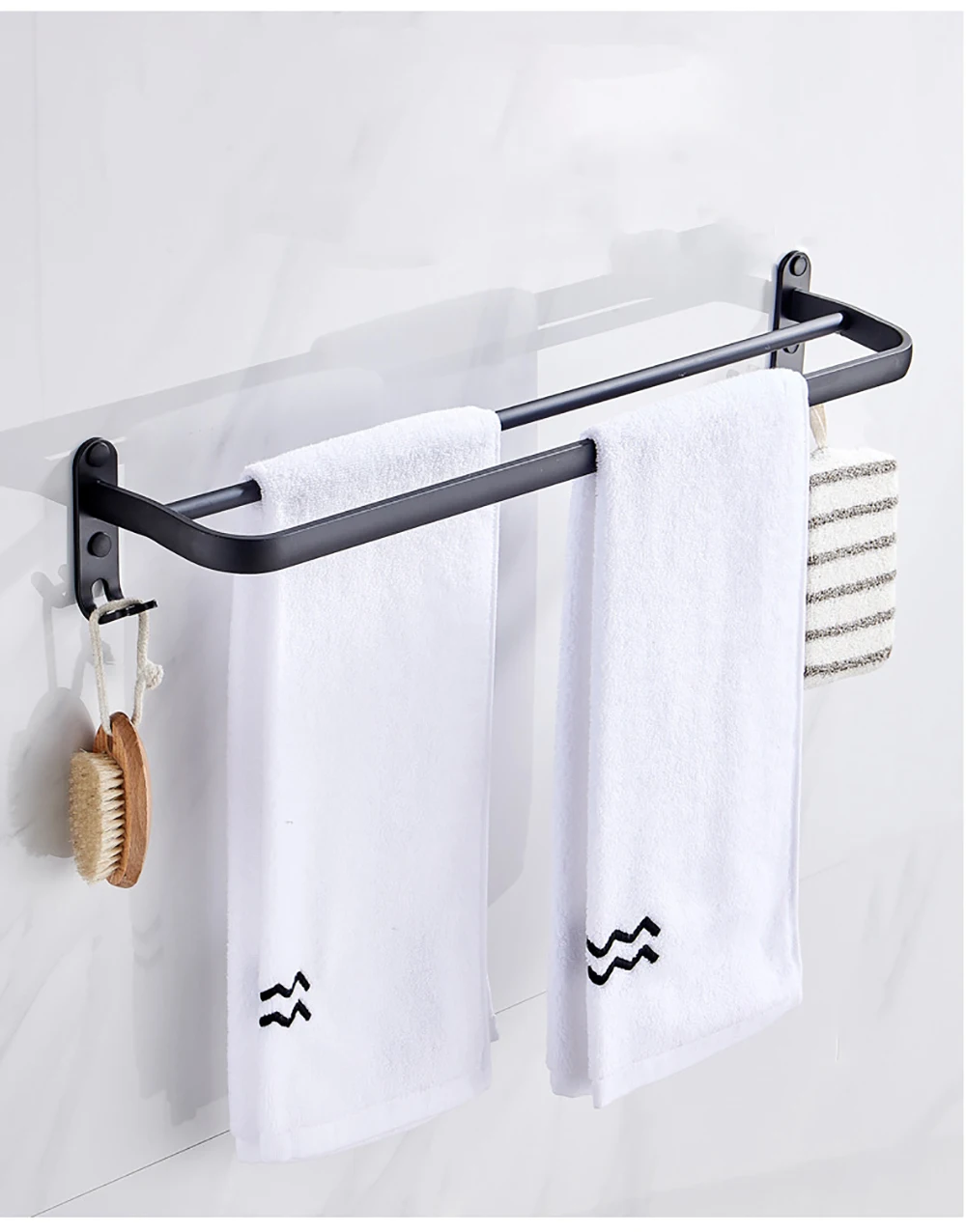 Le Porte Serviette Murale Noir n’est pas qu’un simple support, il est aussi un élément de décoration polyvalent. Avec ses deux crochets intégrés, il vous offre l’opportunité de suspendre divers accessoires indispensables. Que ce soit pour votre douche ou votre baignoire, ce porte-serviette optimise l’espace de manière ingénieuse.