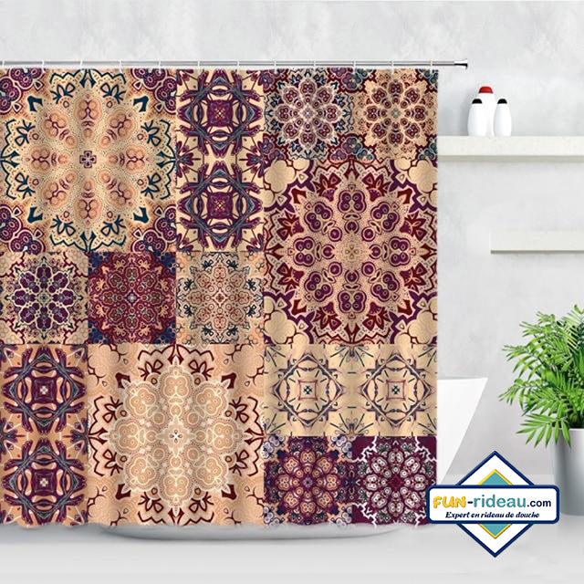 Transformez votre salle de bain avec le Rideau de Douche Graphique Rosaces Beiges et Bordeaux