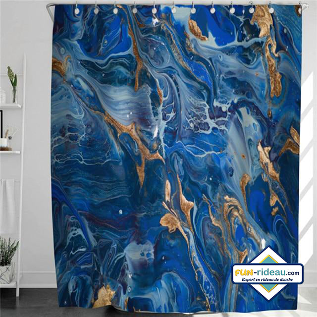 Rideau de Douche Original Effet Marbre Bleu pour une Salle de Bain Élégante