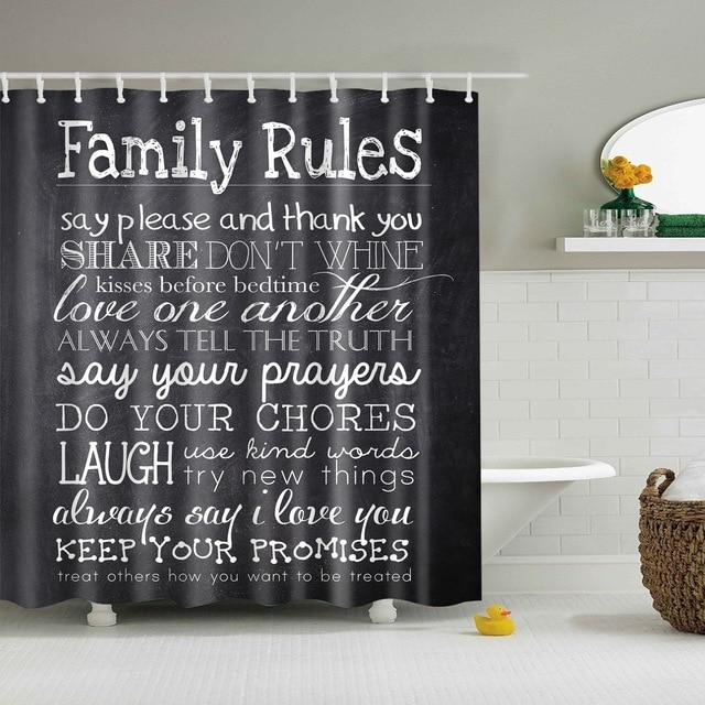 Achetez le Rideau de Douche Original Family Rules et transformez votre salle de bain en un espace éducatif et joyeux!