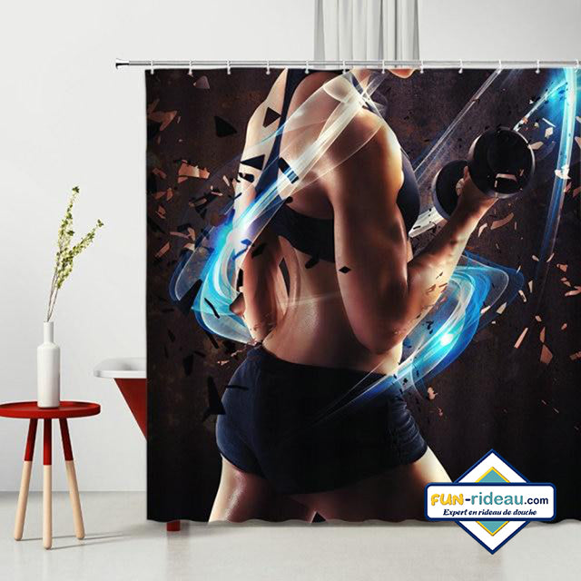 Rideau de Douche Original Femme et entrainement sportif pour une salle de bain énergisante