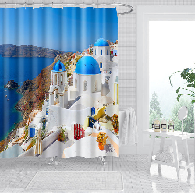Facilité d’installation et d’entretien du Rideau de Douche Paysage Village Pittoresque