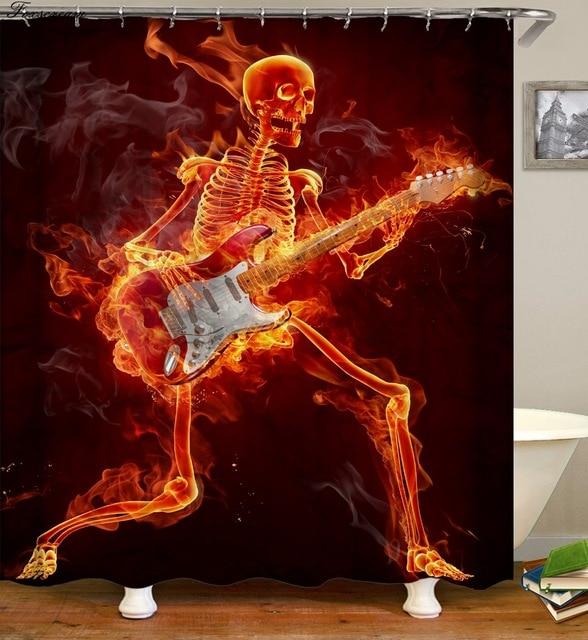 Le Rideau de Douche Tête de Mort Guitariste en Flamme: fusion de style et durabilité
